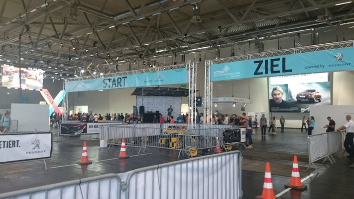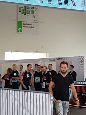 Als wir am Sonntag, den 25. September 2016, früh morgens am Kölner Messegelände ankamen war es noch recht leer und ruhig. Auch in Halle 6 war es noch sehr überschaubar. Nur bei der Präsentation der neusten Drohnen diverser Hersteller an der Copter-World war die Hölle los. Auch beim Startblock vor uns war die Anzahl der Teilnehmer ziemlich gering. Wir holten unsere Startunterlagen ab und zogen uns für unsere Challenge um. Besonders Miinee war ein wenig nervös, da dies nach dem Muddy Angel erst ihr zweiter Hindernislauf war und sie Respekt vor den großen Hindernissen hatte.